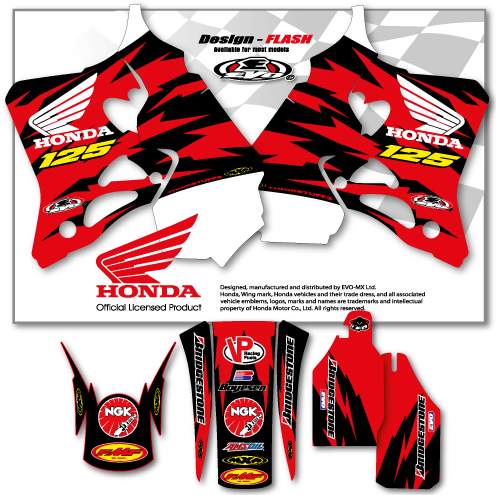 Here’s a kit plucked from our MXA archives and given a dust off, a couple of logo tweaks and a matching easy fit ‘Tuffstuff’ Retro Cross seat cover, not forgetting the all important Honda Product Licence approval.